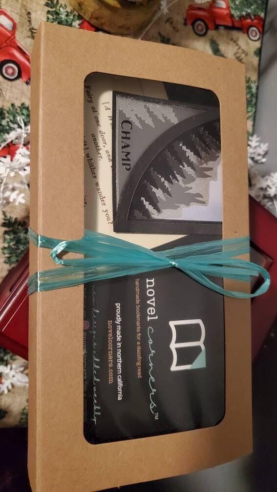 Our Novel Corners™ are made of high quality cardstock, printed papers and permanent adhesive vinyl. Everything is layered and assembled with strong glue to ensure a durable bookmark to last you many reads. Special care should be taken to keep it looking beautiful. Make sure your hands are clean (free from excess oils, lotion, dirt, food or residue). The bookmark is made of paper and will absorb moisture, so keep it out heat, direct sunlight and high humidity just as you would a book.