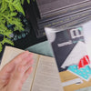 Our Novel Corners™ are made of high quality cardstock, printed papers and permanent adhesive vinyl. Everything is layered and assembled with strong glue to ensure a durable bookmark to last you many reads. Special care should be taken to keep it looking beautiful. Make sure your hands are clean (free from excess oils, lotion, dirt, food or residue). The bookmark is made of paper and will absorb moisture, so keep it out heat, direct sunlight and high humidity just as you would a book.